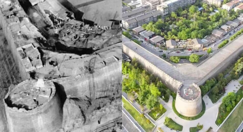 (图为70年代与现在西安城墙景色对比图)