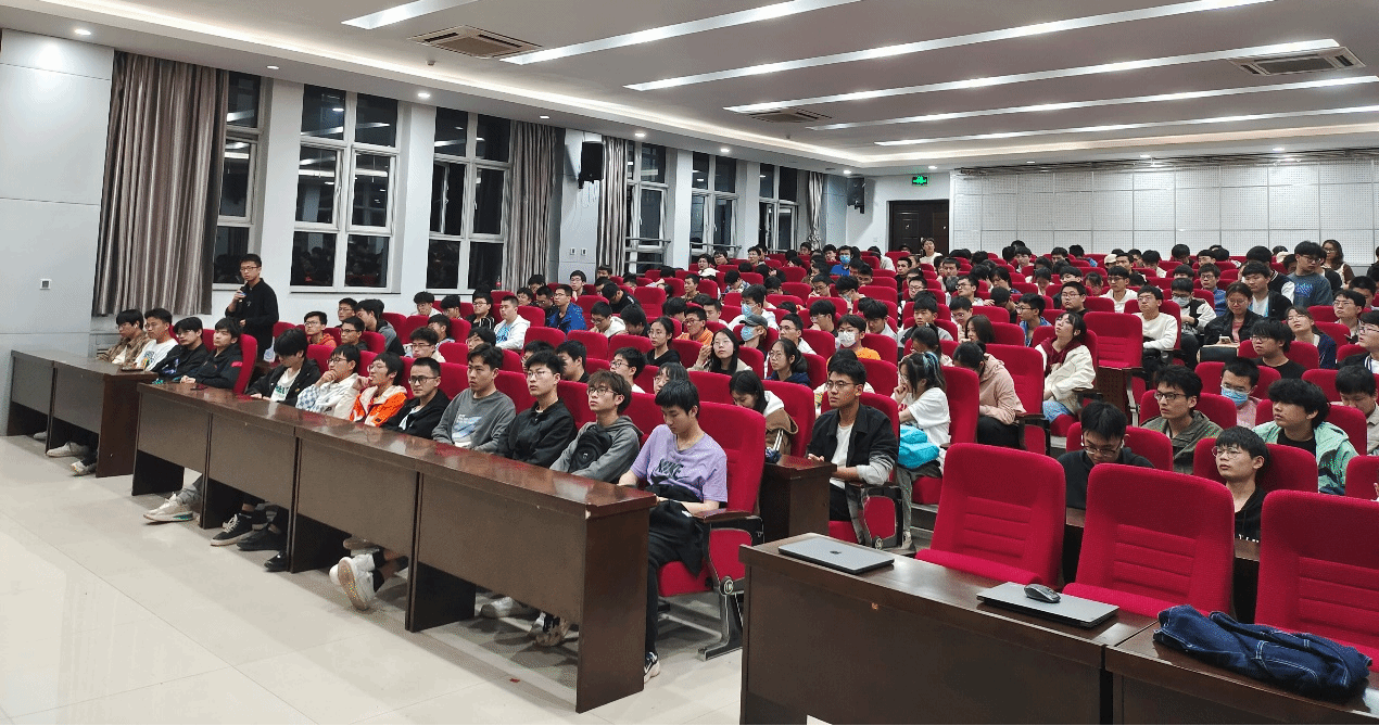 院长助理秦雨潇、系统与控制工程系副教授何建华、大一、大二年级辅导员刘向阳、翟伟乐、吴宝龙参与了此次活动。活动在自动化报告厅举行,全场座无虚席,甚至在走廊“加座”,现场交流氛围热烈。