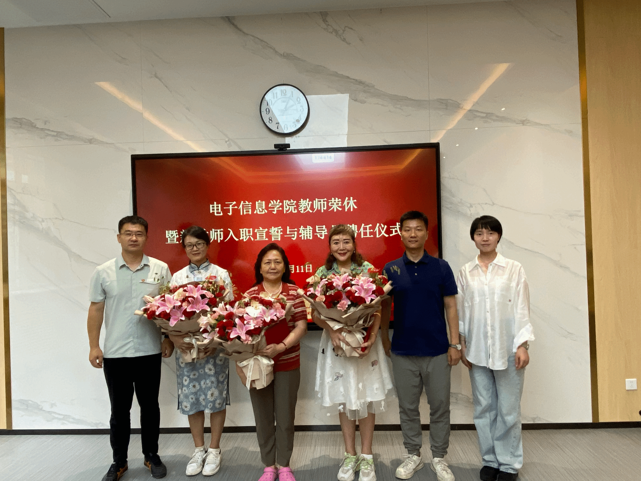 新进教师入职宣誓仪式上,院领导和荣休教师为新进教师佩戴校徽,高永胜带领新进教师进行了入职宣誓。随后,6位新进教师签订了《师德师风承诺书》。